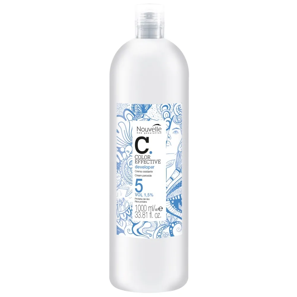 Окислювальна емульсія Cream peroxide Developer з кремообразною, ніжною формулою і густою консистенцією. Окисник змішується в неметалевій ємності з фарбами Nouvelle Hair Color 100 мл, Nouvelle Smart 60 мл, Nouvelle Metallum 60 мл і засобами для освітлення. Після змішування утвориться однорідна робоча суміш, яка легко і рівномірно наноситься на волосся. Має у своєму складі гідролізований рисовий білок, який зволожує шкіру голови і волосся, захищає його від деформації і зовнішніх впливів, надає блиск. В асортименті: 1,5%, 3%, 6%, 9%, 12%. Застосування: Окислювальна емульсія 1,5% (5 Vol), 1000 мл Cream peroxide Developer Nouvelle Окислювач змішати з фарбою у потрібній пропорції, залежно від бажаного ефекту. Залежно від продукту пропорція становить 1:1, 1:2.Окислювальна емульсія Cream peroxide Developer Nouvelle