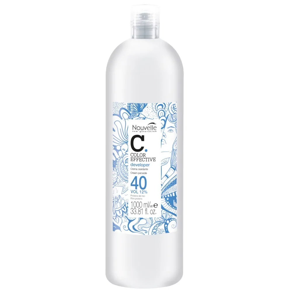 Окислювальна емульсія Cream peroxide Developer з кремообразною, ніжною формулою і густою консистенцією. Окисник змішується в неметалевій ємності з фарбами Nouvelle Hair Color 100 мл, Nouvelle Smart 60 мл, Nouvelle Metallum 60 мл і засобами для освітлення. Після змішування утвориться однорідна робоча суміш, яка легко і рівномірно наноситься на волосся. Має у своєму складі гідролізований рисовий білок, який зволожує шкіру голови і волосся, захищає його від деформації і зовнішніх впливів, надає блиск. В асортименті: 1,5%, 3%, 6%, 9%, 12%. Застосування: Окислювальна емульсія 12% (40 Vol), 1000 мл Cream peroxide Developer Nouvelle Окислювач змішати з фарбою у потрібній пропорції, залежно від бажаного ефекту. Залежно від продукту пропорція становить 1:1, 1:2.Окислювальна емульсія Cream peroxide Developer Nouvelle