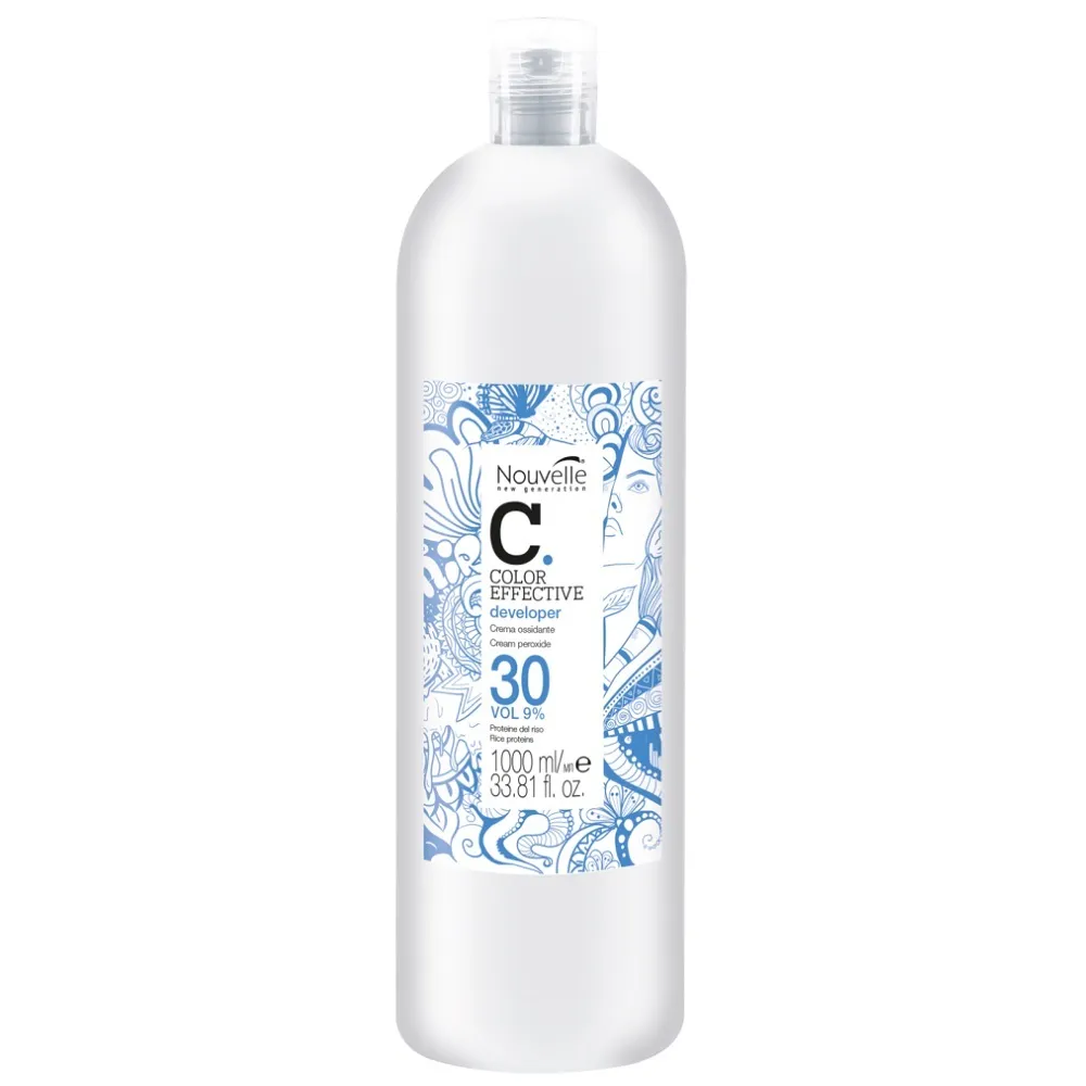 Окислювальна емульсія Cream peroxide Developer з кремообразною, ніжною формулою і густою консистенцією. Окисник змішується в неметалевій ємності з фарбами Nouvelle Hair Color 100 мл, Nouvelle Smart 60 мл, Nouvelle Metallum 60 мл і засобами для освітлення. Після змішування утвориться однорідна робоча суміш, яка легко і рівномірно наноситься на волосся. Має у своєму складі гідролізований рисовий білок, який зволожує шкіру голови і волосся, захищає його від деформації і зовнішніх впливів, надає блиск. В асортименті: 1,5%, 3%, 6%, 9%, 12%. Застосування: Окислювальна емульсія 9% (30 Vol), 1000 мл Cream peroxide Developer Nouvelle Окислювач змішати з фарбою у потрібній пропорції, залежно від бажаного ефекту. Залежно від продукту пропорція становить 1:1, 1:2.Окислювальна емульсія Cream peroxide Developer Nouvelle