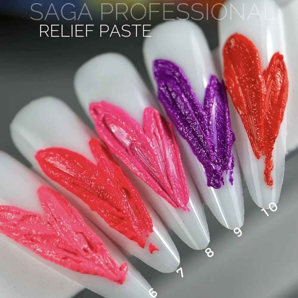 SAGA Professional гель для дизайну Relief past — паста для створення об`ємних фігур, мазків і текстур на нігтях. Її текстура, подібна до цукрових часток, надає