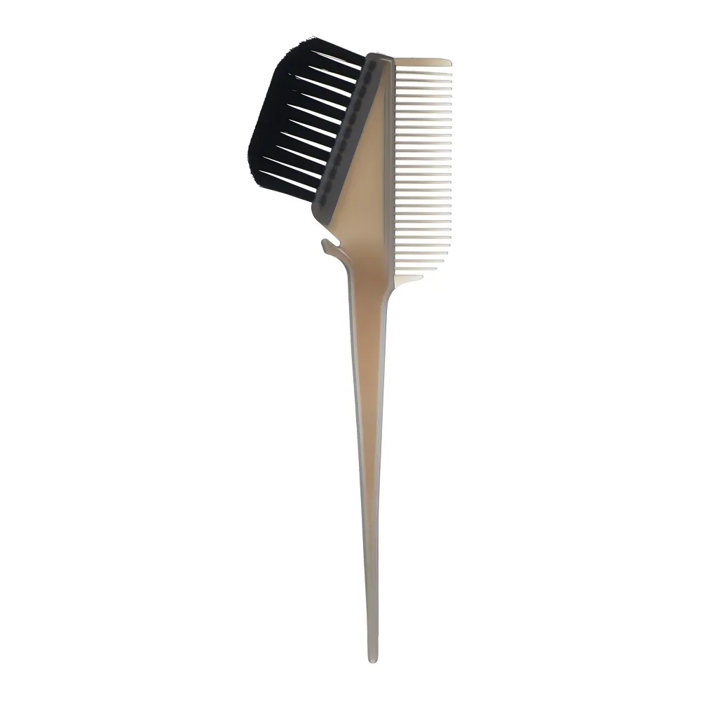 Професійний пензлик Comair Germany з прозорим корпусом та чорними деталями надійний інструмент для фарбування волосся з інтегрованим гребінцем. Він створений для точного нанесення фарби, зручної роботи з пасмами та ефективного розподілу барвника. Двосторонній дизайн: одна частина — пензлик із нейлоновою щетиною, інша - гребінець для точного поділу пасм. Корпус виготовлений із міцного пластику, стійкого до впливу фарбувальних засобів. Поверхня ручки забезпечує зручний захват і контроль під час роботи. Інструмент підходить як для салонних професіоналів, так і для домашнього користування. Розмір: 21,5 x 7 см.Пензлик для фарбування з гребінцем (прозорий, чорний) 3011677/791135 Comair Germany