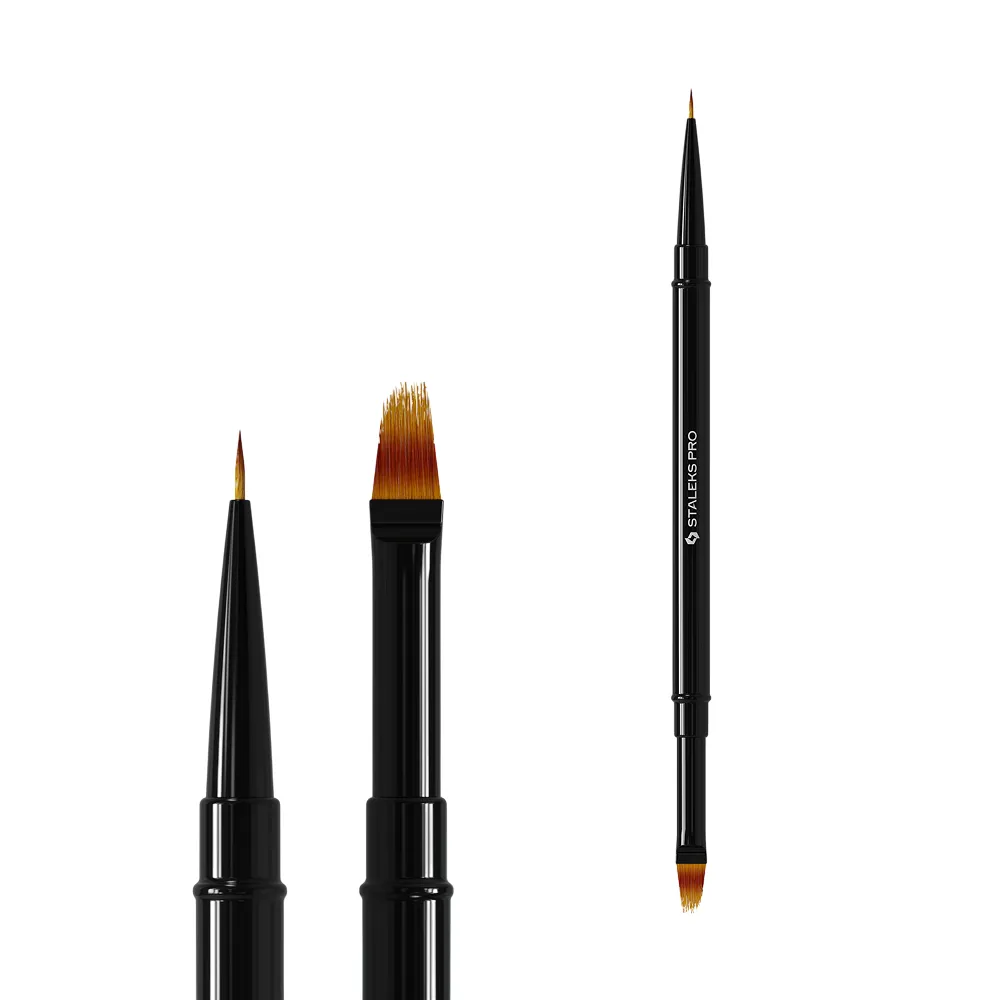 Нові двосторонні пензлі EXPERT - інноваційне рішення, за допомогою якого зручно поєднувати різні техніки нанесення матеріалу, прискорюючи процедуру і надаючи більше точності. Знімні робочі частини, міцний алюмінієвий корпус та нейлоновий ворс — довговічні й зручні. Інструмент з двома робочими сторонами влаштований за принципом 2 в 1. Вони легко ховаються всередину ручки, захищають щетинки від пошкоджень і забруднень. Майстер дістає потрібну частину і фіксує зовні, а після використання насадка перевертається і ховається назад. Конструкція виключає потребу в ковпачках, продовжує термін служби та спрощує зберігання. NBE-01/07 - творчість не знає меж: Особливості продукту: Пензлик двосторонній EXPERT лайнер 7 мм / для градієнта 11 мм (NBE-01/07) STALEKS PROПензлик двосторонній EXPERT лайнер 7 мм / для градієнта 11 мм (NBE-01/07) STALEKS PRO