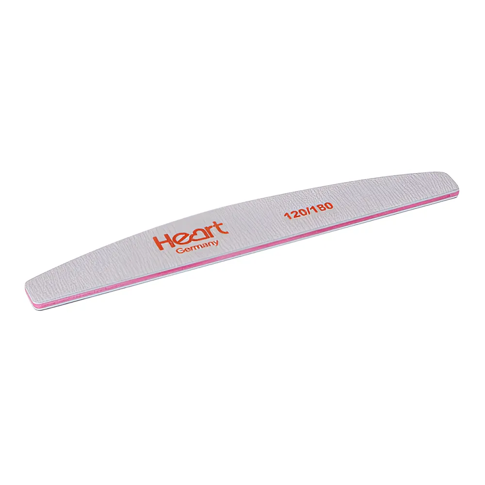 Пилка Half Heart - це якісний та довговічний інструмент. Абразив виготовлений з високоякісної наждакової тканини, що відрізняється стійкістю навіть при інтенсивному використанні. Завдяки своїй напівкруглій формі може якісно обробляти ніготь з усіх боків, усуває відколи, нерівності та інші вади; коригує довжину та форму. Пилка має рівномірний зносостійкий абразив, який обре очищується щіткою від опила. Це професійний інструмент, яким легко можуть користуватися не майстри. Особливості продукту: Пилка для нігтів 120/180 грит півмісяць Half Heart Розмір: 17,8 x 2,8 x 0,5 см.Пилка для нігтів півмісяць Half Heart