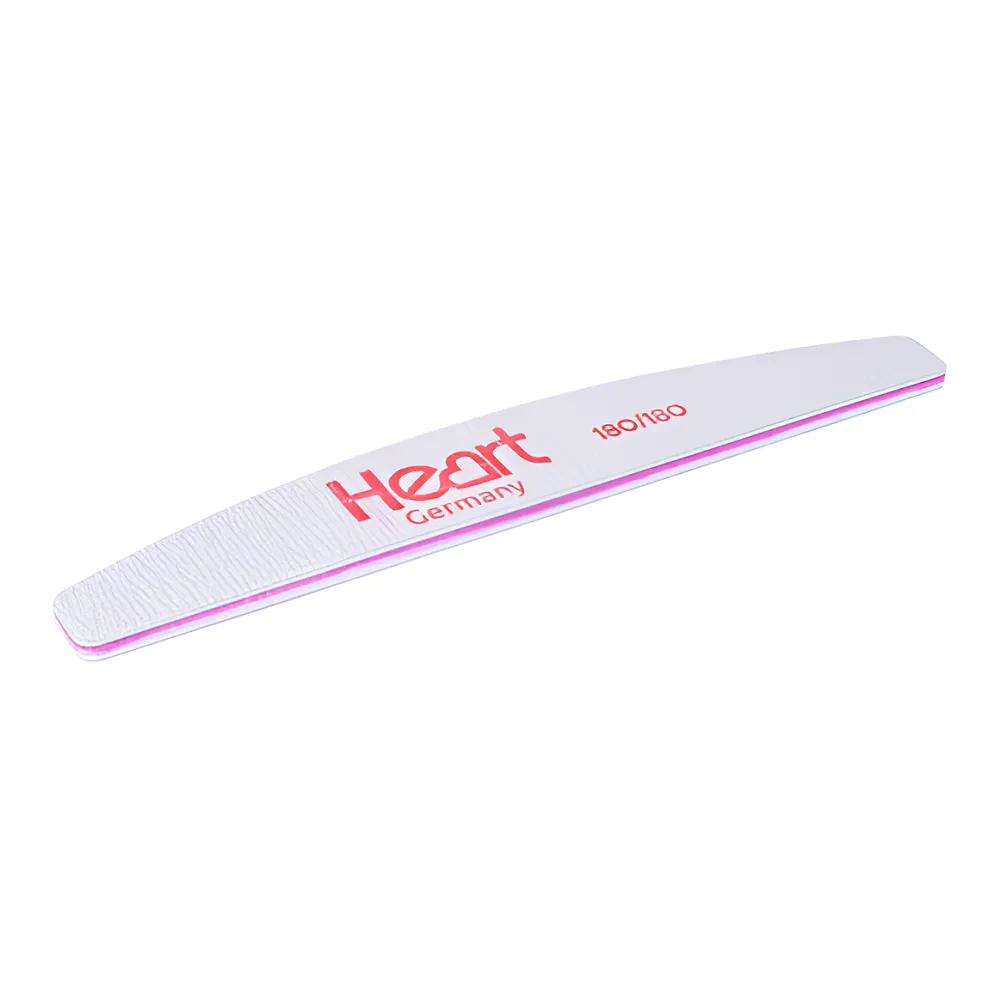 Пилка Half Heart - це якісний та довговічний інструмент. Абразив виготовлений з високоякісної наждакової тканини, що відрізняється стійкістю навіть при інтенсивному використанні. Завдяки своїй напівкруглій формі може якісно обробляти ніготь з усіх боків, усуває відколи, нерівності та інші вади; коригує довжину та форму. Пилка має рівномірний зносостійкий абразив, який обре очищується щіткою від опила. Це професійний інструмент, яким легко можуть користуватися не майстри. Особливості продукту: Пилка для нігтів 180/180 грит півмісяць Half Heart Розмір: 17,8 x 2,8 x 0,5 см.Пилка для нігтів півмісяць Half Heart