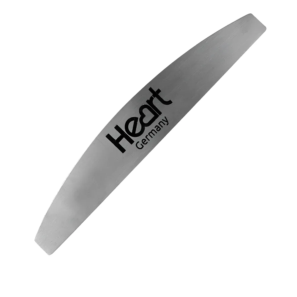 Heart Half Metal Steel (півмісяць, метал) — багаторазова металева пилка-основа від німецького бренду. Така основа застосовується в поєднанні з самоклеючими одноразовими абразивними файлами, жорсткість яких можна підбирати індивідуально під кожного клієнта, можна використовувати як пилку або шліфувальник. Металева пилка-основа виготовлена із міцної нержавіючої сталі, дезінфікується та стерилізується після кожного клієнта. Особливості продукту: Пилка-основа 175 мм металева півмісяць Metal Steel Half Heart Розмір: 17,5 x 2,9 см.Пилка-основа 175 мм металева півмісяць Metal Steel Half Heart