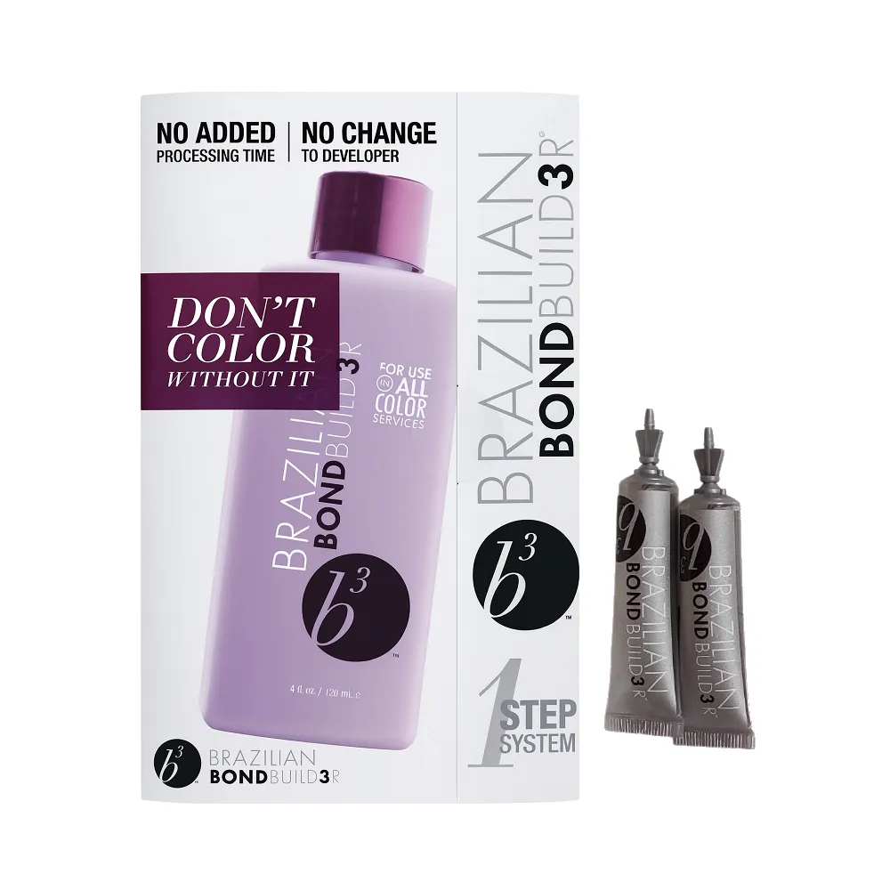 Одноетапна професійна система для захисту волосся під час будь-якого фарбування. b3 це унікальний відновлювальний засіб, який необхідно додавати до будь-якого барвника або пудри, щоб зберегти структуру волосся, закріпити колір і надати неймовірний блиск! Широкі можливості b3 дозволяють використовувати його під час будь-якого типу фарбування волосся. Революційна формула вже протестована багатьма стилістами, які відкрили для себе унікальні можливості для фарбування лише в один етап. Особливості продукту: Професійний засіб для захисту волосся під час фарбування, 2*7 мл Kit b3 BRAZILIAN BOND BUILDER Застосування: Професійний засіб для захисту волосся під час фарбування, 2*7 мл Kit b3 BRAZILIAN BOND BUILDER Після того, як ви змішали формули кольору (фарба+проявник) або освітлювача, додайте Brazilian Bond Builder у наступній пропорції:Професійний засіб для захисту волосся під час фарбування Kit b3 BRAZILIAN BOND BUILDER