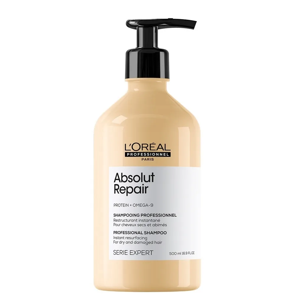 Шампунь Absolut Repair для інтенсивного відновлення пошкодженого волосся відмінно бореться з руйнуванням структури локонів, спричиненим негативними факторами навколишнього середовища. З кожним миттям волосся набуває свіжого блиску, стає живішим та шовковистим. Подібний ефект підтверджується спеціальним тестом, під час якого шампунь використовували в комплексі з кондиціонером, представленим у цій же серії L`Oreal Professionnel. Особливості продукту: Шампунь для інтенсивного відновлення волосся, 500мл Shampoo Absolut Repair Serie Expert L`Oreal Professionnel Застосування: Шампунь для інтенсивного відновлення волосся, 500мл Shampoo Absolut Repair Serie Expert L`Oreal Professionnel Рівномірно нанести на вологе волосся, спінити, змити.Шампунь для інтенсивного відновлення волосся Shampoo Absolut Repair Serie Expert L`Oreal Professionnel