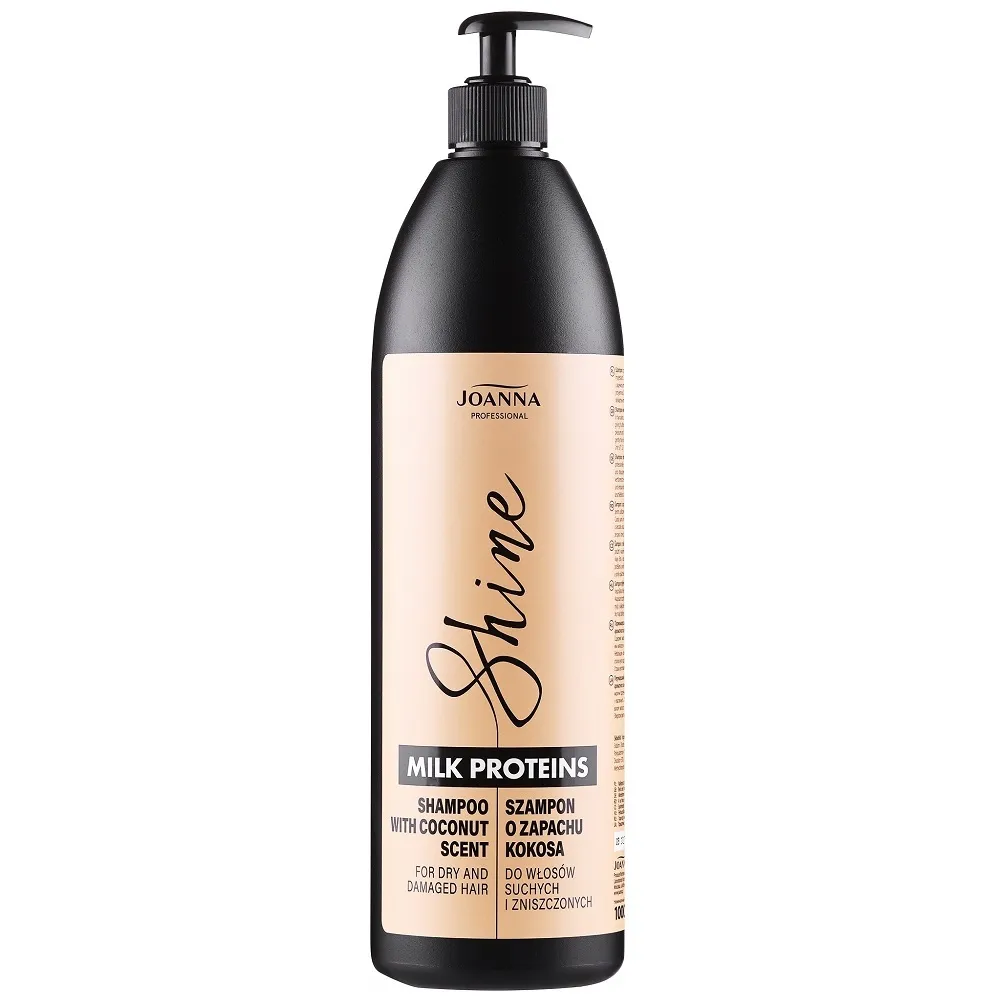 Професійний шампунь Joanna MILK PROTEINS Shine створений для делікатного догляду за сухим і пошкодженим волоссям, яке потребує інтенсивного живлення та відновлення. Засіб м’яко очищає волосся і шкіру голови, не пересушує, та повертає пасмам здоровий блиск і доглянутий вигляд. Формула з молочними протеїнами живить волосяне волокно, покращує його еластичність і робить волосся м’яким та приємним на дотик. При регулярному використанні волосся виглядає більш гладеньким, зволоженим і наповненим життєвою силою. Має приємний солодкий кокосовий аромат. Особливості продукту: Шампунь для сухого та пошкодженого волосся з молочними протеїнами, 1000 мл Shampoo MILK PROTEINS Shine Joanna Застосування: Шампунь для сухого та пошкодженого волосся з молочними протеїнами, 1000 мл Shampoo MILK PROTEINS Shine Joanna Нанести на вологе волосся масажними рухами, ретельно змити водою.Шампунь для сухого та пошкодженого волосся з молочними протеїнами Shampoo MILK PROTEINS Shine Joanna