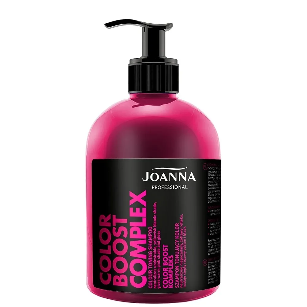 Ніжний рожевий відтінок блонда та доглянутий вигляд волосся - легко досягти з тонувальним шампунем Joanna Professional. Засіб поступово надає волоссю теплий рожевий нюанс, відновлює яскравість і свіжість світлого кольору з кожним використанням. Шампунь м’яко очищає, усуває небажані відтінки у світлому волоссі та одночасно доглядає за пасмами, залишаючи їх зволоженими, живленими й блискучими. Особливості продукту: Шампунь тонувальний для відновлення кольору (з Рожевим відтінком), 500 мл Shampoo COLOR BOOST COMPLEX Joanna Застосування: Шампунь тонувальний для відновлення кольору (з Рожевим відтінком), 500 мл Shampoo COLOR BOOST COMPLEX Joanna Нанесіть невелику кількість шампуню на вологе волосся, м’яко помасажуйте до утворення піни, залиште на волоссі на декілька хвилин, після чого ретельно змийте водою.Шампунь тонувальний для відновлення кольору (з Рожевим відтінком) Shampoo COLOR BOOST COMPLEX Joanna