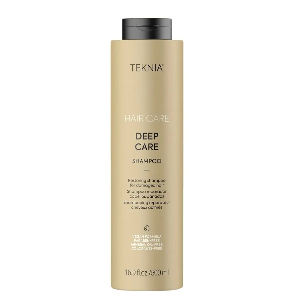 Шампунь Shampoo DEEP CARE призначений для м`якого делікатного очищення та інтенсивного відновлення пошкодженого волосся. Засіб сприяє розгладженню волосяного стрижня і відновленню кератинових зв`язків усередині його структури. Також підтримує оптимальний гідробаланс волосся і шкіри голови, робить локони м`якими та еластичними, стійкими до ламкості. Перевірка ефективності продукту показала результат - волосся на 35% стійкіше. Має ніжний квітковий аромат з ефірною олією герані. Особливості продукту: Активні компоненти: fiberhance це натуральний субпродукт, отриманий з насіння кукурудзи. Застосування: нанести невелику кількість засобу на вологе волосся і трохи спінити, через 1-2 хвилини змити теплою проточною водою.Шампунь відновлювальний для пошкодженного та сухого волосся Shampoo DEEP CARE Hair Care TEKNIA LAKME