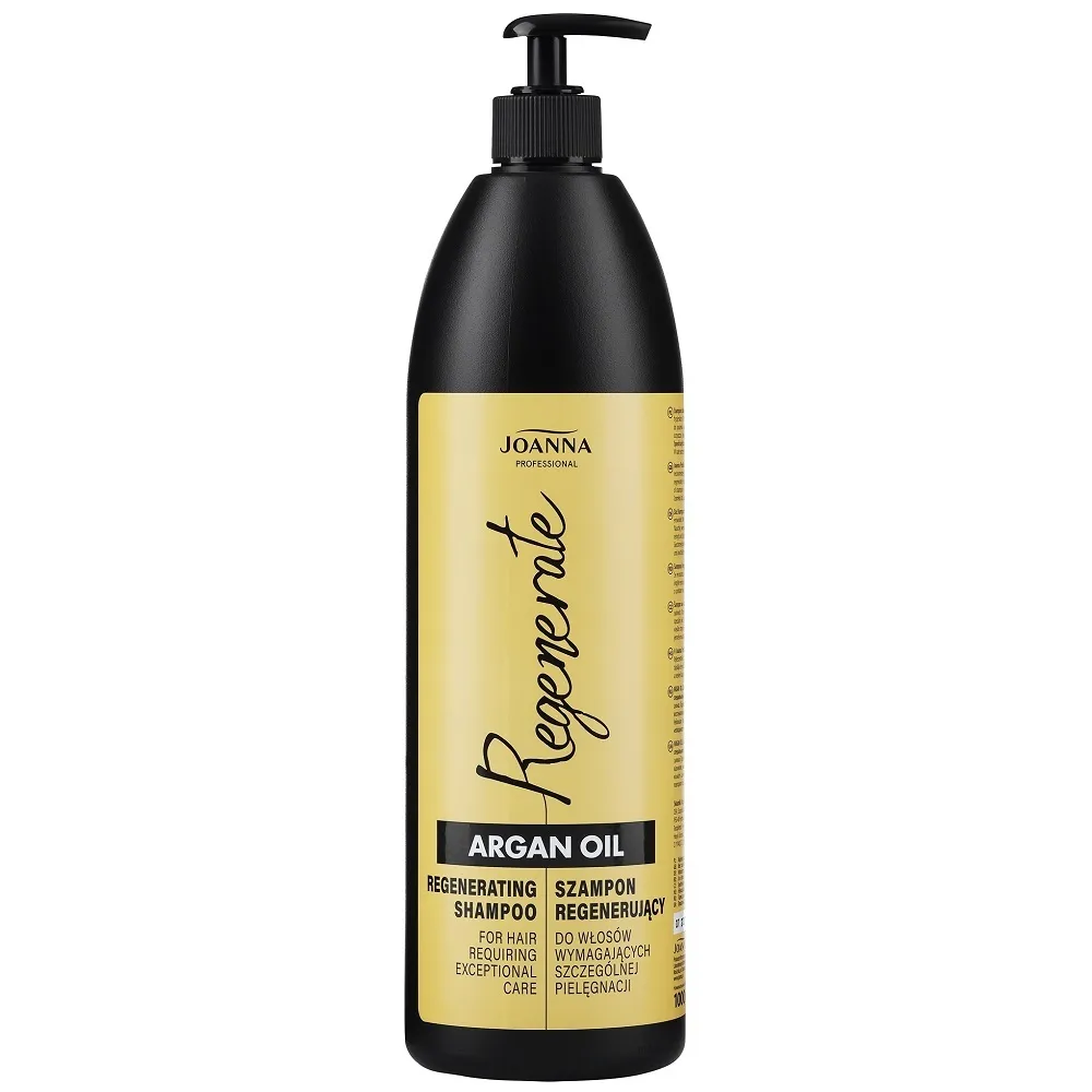 Шампунь Joanna Professional ARGAN OIL розроблений для ослабленого та пошкодженого волосся, яке потребує інтенсивного догляду після частих укладок і термічного впливу. Формула з аргановою олією, яка має регенеративні властивості, дбайливо очищує, одночасно розгладжує та відновлює структуру волосся. Регулярне використання шампуню покращує загальний стан волосяного волокна, робить пасма більш м’якими, шовковистими та блискучими. Волосся стає слухняним і значно легшим у розчісуванні, набуває здорового та доглянутого вигляду. Особливості продукту: Шампунь відновлювальний для слабкого волосся з аргановою олією, 1000 мл Shampoo ARGAN OIL Regenerate Joanna Застосування: Шампунь відновлювальний для слабкого волосся з аргановою олією, 1000 мл Shampoo ARGAN OIL Regenerate Joanna Невелику кількість шампуню нанесіть на мокре волосся, ніжно помасажуйте пасма до появи піни, потім ретельно змити шампунь водою.Шампунь відновлювальний для слабкого волосся з аргановою олією Shampoo ARGAN OIL Regenerate Joanna