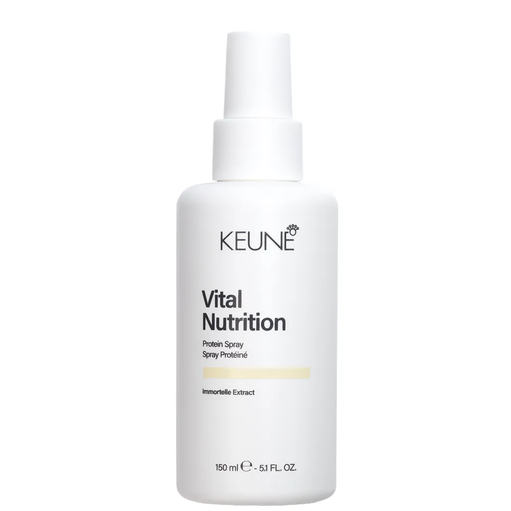 Keune Care Vital Nutrition Protein Spray - універсальний протеїновий спрей без змивання з ефектом термозахисту. Створений для сухого, тьмяного, пошкодженого та ламкого волосся, яке потребує живлення й відновлення. Спрей допомагає підтримувати еластичність, м’якість і здоровий блиск волосся, забезпечує надійний щоденний догляд. Цей багатофункціональний засіб зміцнює волосся, зменшує ламкість та відновлює шовковисту м’якість, особливо під час та після хімічних процедур. Активні компоненти: Спрей протеїновий з термозахистом (до 230°С) незмивний для пошкодженого волосся "Основне живлення", 150 мл Spray Protein Vital Nutrition Care KEUNE Особливості продукту: Спрей протеїновий з термозахистом (до 230°С) незмивний для пошкодженого волосся "Основне живлення", 150 мл Spray Protein Vital Nutrition Care KEUNE Застосування: Спрей протеїновий з термозахистом (до 230°С) незмивний для пошкодженого волосся "Основне живлення", 150 мл Spray Protein Vital Nutrition Care KEUNE Розпиліть на вологе або сухе волосся, не змивайте. Використовуйте перед сушінням феном чи термоукладанням, а також як щоденний зволожувальний догляд.Спрей протеїновий з термозахистом (до 230°С) незмивний для пошкодженого волосся "Основне живлення" Spray Protein Vital Nutrition Care KEUNE