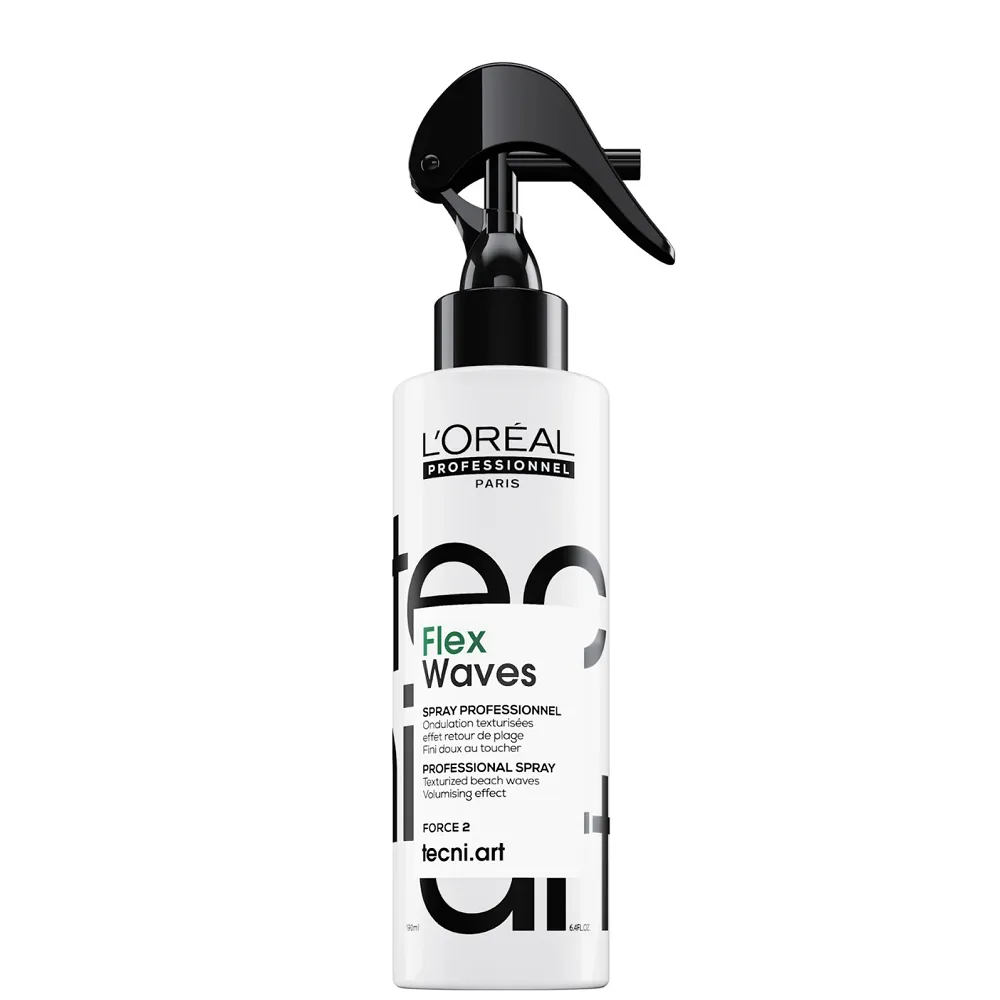 Соляний спрей Spray Flex Waves Tecni.Art створює ефект легких хвиль, наче після відпочинку на узбережжі. Засіб надає волоссю об’єму, м’якості та природної текстури без обтяження та липкості. Flex Waves забезпечує середню фіксацію (Force 2), робить укладку еластичною, легкою та рухливою. Ідеальний вибір для створення стильних недбалих зачісок і природних локонів із матовим фінішем. Особливості продукту: Спрей сольовий для текстурування волосся, 190 мл (Force 2) Spray Flex Waves Tecni.Art L’Oreal Professionnel Застосування: Спрей сольовий для текстурування волосся, 190 мл (Force 2) Spray Flex Waves Tecni.Art L’Oreal Professionnel Розпиліть спрей на сухе або вологе волосся, пальцями розділіть пасма для створення хвилястих локонів або висушіть волосся феном з дифузором. Для ефекту легкої недбалості - розчешіть локони пальцями після висихання.Спрей сольовий для текстурування волосся (Force 2) Spray Flex Waves Tecni.Art L’Oreal Professionnel