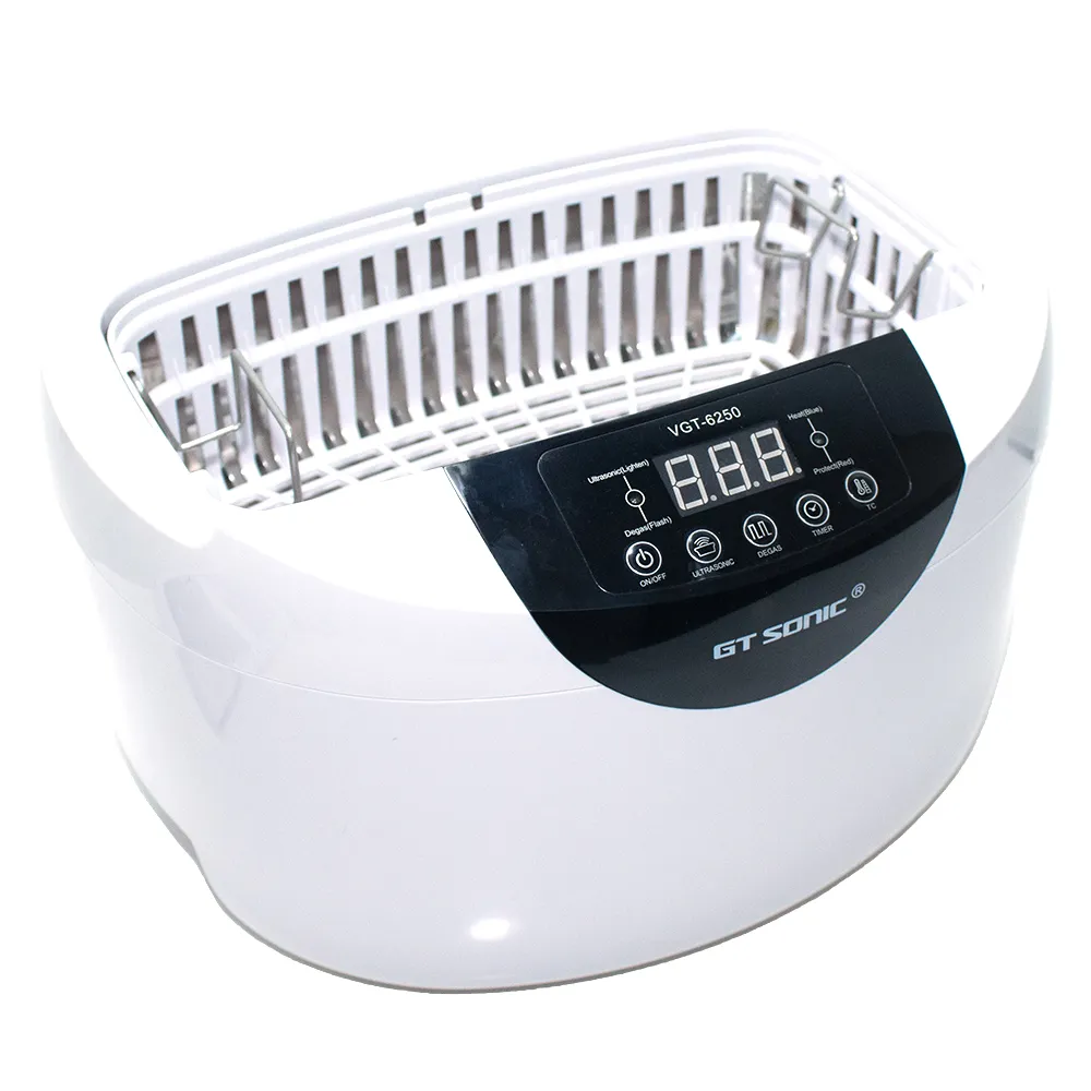 Стерилізатор ультразвуковий VGT-6250 — надійний та ефективний прилад для професійної дезінфекції інструментів у салонах краси, косметологічних кабінетах, стоматології та навіть лабораторіях. Сучасний нейл-майстер обов`язково повинен мати таку мийку у своєму арсеналі: це гарантує захист його клієнтів від зараження грибковими та бактеріальними інфекціями. Для роботи в спеціальний резервуар заливається дезінфікуючий розчин, потім укладаються інструменти, які потрібно очистити і апарат включається. Під дією ультразвуку утворюється безліч дрібних бульбашок, вони розриваються, очищають поверхню від бактерій, грибків і забруднень. Такий метод повністю безпечний для матеріалів і не пошкоджує метал, пластик, скло чи дерево. Місткий резервуар 2,5 л дозволяє обробляти одразу кілька наборів інструментів, а зручний таймер і дисплей спрощують керування процесом. Особливості продукту: Стерилізатор ультразвуковий з підігрівом (об`єм 2,5 л.) GT SONIC VGT-6250 Стерилізатор ультразвуковий з підігрівом (об`єм 2,5 л.) GT SONIC VGT-6250