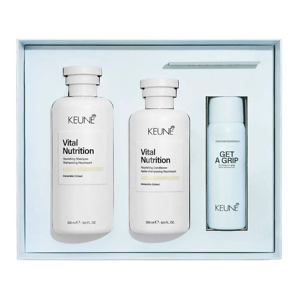 Keune Nourish Gift Set - це преміальний набір із серії, створений для глибокого живлення та відновлення волосся. У комплект входять три засоби, які забезпечують повноцінний щоденний догляд і легкий об’єм. Завдяки унікальній формулі з біоміметичними керамідами, пантенолом та екстрактом безсмертника набір відновлює структуру волосся, повертає йому силу, еластичність і сяйво. Це ідеальний вибір для тих, хто хоче отримати ефект салонного живлення в домашніх умовах. Набір складається з: Святковий набір “Живлення” 2025 (шампунь 300мл+кондиціонер 250мл+спрей 75мл) NOURISH Gift set Care KEUNE Особливості продукту: Святковий набір “Живлення” 2025 (шампунь 300мл+кондиціонер 250мл+спрей 75мл) NOURISH Gift set Care KEUNE Застосування: Святковий набір “Живлення” 2025 (шампунь 300мл+кондиціонер 250мл+спрей 75мл) NOURISH Gift set Care KEUNEСвятковий набір “Живлення” 2025 (шампунь 300мл+кондиціонер 250мл+спрей 75мл) NOURISH Gift set Care KEUNE