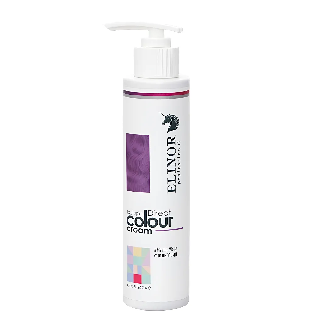 Direct Colour Cream — професійний тонувальний крем прямої дії, розроблений для створення яскравих відтінків на знебарвленому або освітленому волоссі. На натуральному темному волоссі може дати легкий відблиск при денному світлі, особливо на сонці, але не дає інтенсивного тону без попереднього освітлення. Допомагає тимчасово змінити образ без стійкого фарбування та підходить для створення акцентних кольорових ефектів або повного тонування. Формула крему не містить аміаку та забезпечує не лише яскравий кольоровий ефект, але й додатковий догляд. Засіб збагачений активними компонентами, які зволожують, пом’якшують і захищають волосся під час тонування. Стійкість кольору до 6–15 миттів голови, залежно від типу волосся та засобів догляду. Частково тонуватиме сивину, але не повністю перекриє. Особливості продукту: Тонувальний крем для волосся прямої дії (колір: ФІОЛЕТОВИЙ/Mystic Violet), 200 мл Direct Colour Cream ELINOR Professional Застосування: Тонувальний крем для волосся прямої дії (колір: ФІОЛЕТОВИЙ/Mystic Violet), 200 мл Direct Colour Cream ELINOR Professional Зручний у використанні, не потребує окислювача, ідеально наносити на висвітленні пасма. Можна експериментувати і додавати в улюблену маску для підтримання кольору.Тонувальний крем для волосся прямої дії Direct Colour Cream ELINOR Professional
