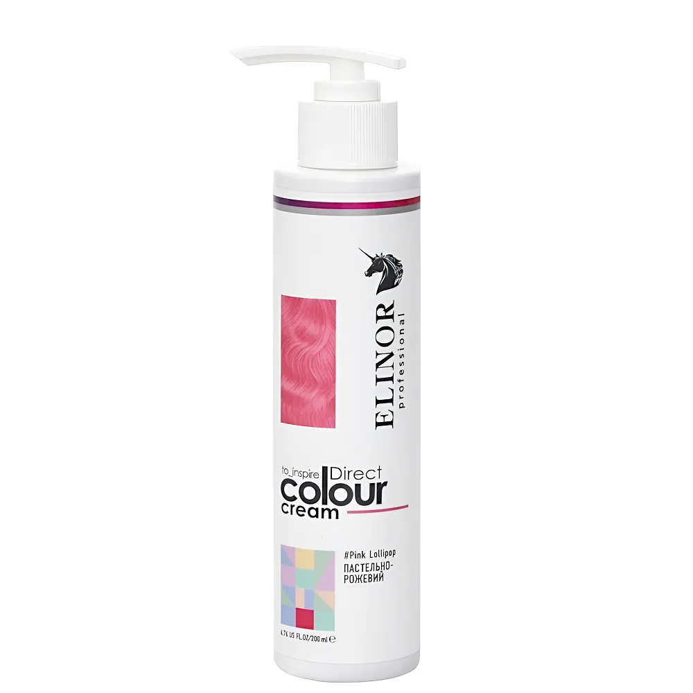 Direct Colour Cream — професійний тонувальний крем прямої дії, розроблений для створення яскравих відтінків на знебарвленому або освітленому волоссі. На натуральному темному волоссі може дати легкий відблиск при денному світлі, особливо на сонці, але не дає інтенсивного тону без попереднього освітлення. Допомагає тимчасово змінити образ без стійкого фарбування та підходить для створення акцентних кольорових ефектів або повного тонування. Формула крему не містить аміаку та забезпечує не лише яскравий кольоровий ефект, але й додатковий догляд. Засіб збагачений активними компонентами, які зволожують, пом’якшують і захищають волосся під час тонування. Стійкість кольору до 6–15 миттів голови, залежно від типу волосся та засобів догляду. Частково тонуватиме сивину, але не повністю перекриє. Особливості продукту: Тонувальний крем для волосся прямої дії (колір: ПАСТЕЛЬНИЙ-РОЖЕВИЙ/Pink Lollipop), 200 мл Direct Colour Cream ELINOR Professional Застосування: Тонувальний крем для волосся прямої дії (колір: ПАСТЕЛЬНИЙ-РОЖЕВИЙ/Pink Lollipop), 200 мл Direct Colour Cream ELINOR Professional Зручний у використанні, не потребує окислювача, ідеально наносити на висвітленні пасма. Можна експериментувати і додавати в улюблену маску для підтримання кольору.Тонувальний крем для волосся прямої дії Direct Colour Cream ELINOR Professional