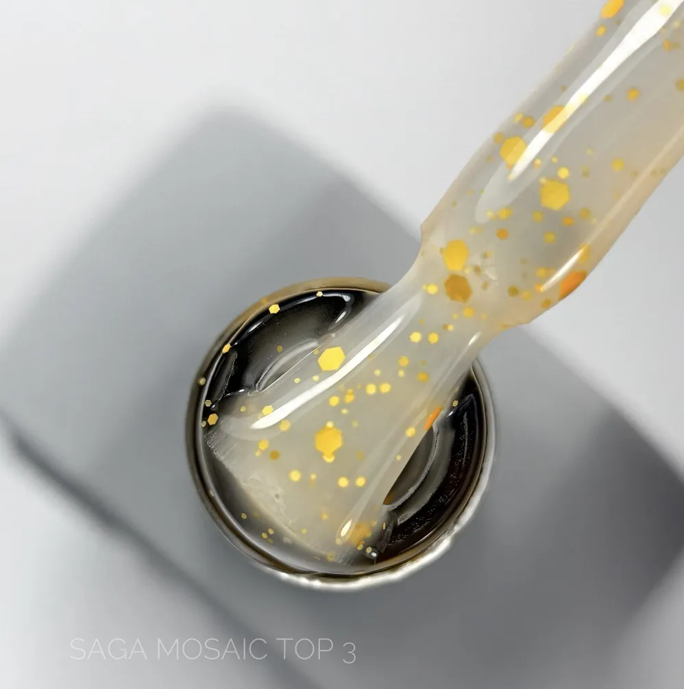 8. Завершіть манікюр, нанесіть Топ Saga Professional MOSAIC для фінішного покриття.