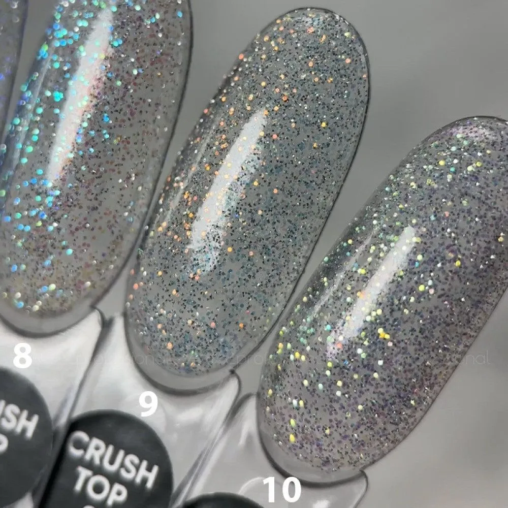 SAGA Professional Crush Top №10 — це світловідбиваючий топ без липкого шару з голографічними блискітками, що створює сяючий ефект на Особливості продукту: Топ світловідбиваючий з голографічними блискітками, 9 мл №10 Cruch Top SAGA ProfessionalТоп світловідбиваючий з голографічними блискітками, 9 мл №10 Cruch Top SAGA Professional