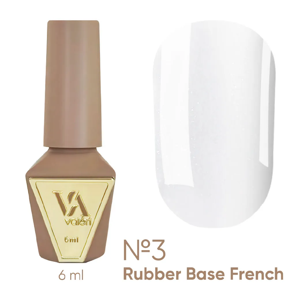Valeri Rubber Base French №3 — це щільна каучукова база середньої густоти з елегантним молочним відтінком і делікатним золотим мікрошиммером. Вона чудово вирівнює нігтьову пластину, маскує нерівності та створює бездоганну архітектуру нігтя з природним сяйвом.