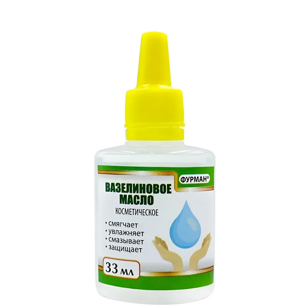 Косметичне вазелінове масло - це універсальний засіб! Не дарма його можна зустріти в безліч косметичних продуктах, так як воно має ряд корисних властивостей: Застосування: Вазелінова олія "косметична", 33 мл ФУРМАН Невелику кількість нанести на шкіру та розтерти.Вазелінова олія "косметична" ФУРМАН