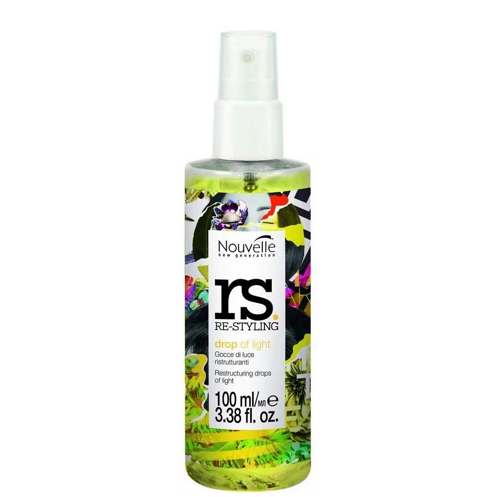 Засіб Drop of Light завдяки своїй унікальній формулі всього за кілька крапель миттєво надає волоссю сяйво, шовковистість і гладкість. Олія доглядає за кінчиками, що січуться, відновлює їх структуру, запобігає появі ламкого волосся, захищає волосся при використанні теплових приладів, не обтяжує і не жирнить волосся. Особливості продукту: Засіб для догляду та блиску волосся на основі силікону, 100 мл Drop of Light Re-styling Nouvelle Активні компоненти: Засіб для догляду та блиску волосся на основі силікону, 100 мл Drop of Light Re-styling Nouvelle Блиск: 5/5. Фіксація: 1/5. Застосування: Засіб для догляду та блиску волосся на основі силікону, 100 мл Drop of Light Re-styling Nouvelle Нанести руками 4-5 крапель засобу на вологе або сухе волосся і приступити до укладання.Засіб для догляду та блиску волосся на основі силікону Drop of Light Re-styling Nouvelle